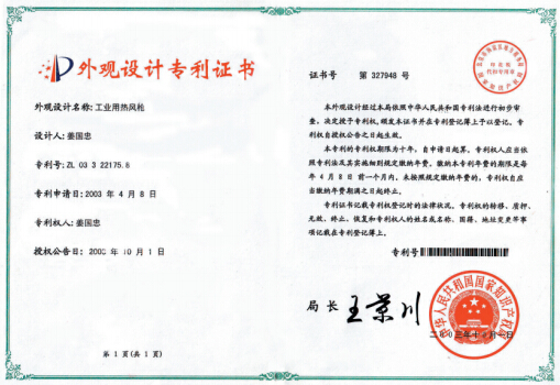 本廠 始建于1994年, 擁有塑膠件注塑生產加工、發熱芯生產線、成品裝配線,是從事電熱工具:熱風槍、熱熔膠槍、塑膠焊槍等電器產品開發、生產的專業廠家,擁有二十多年的生產經驗,其中工業用的調溫、恒溫、數字顯示、數字控制溫度的熱風槍、熱熔膠槍已處于國際地位,并獲得多項專利。2000年榮獲《質量監督檢測中心合格產品》,2002年經德國CE認證中心認證,榮獲CE證書。2003年榮 獲國家輕工部頒發的《中國名優產品》證書,并...